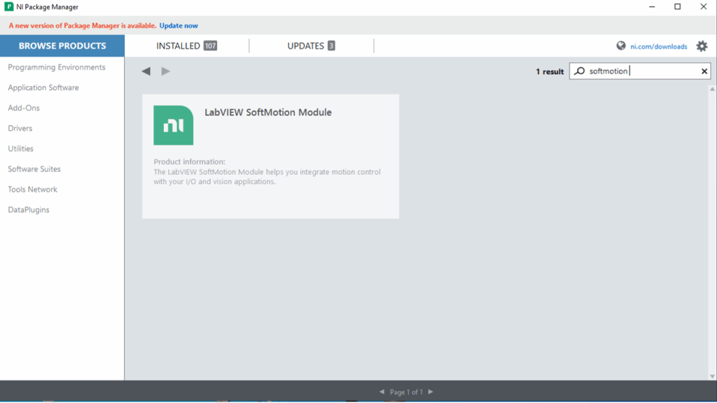 Para controlar los motores de movimiento en SolidWorks desde LabVIEW, es necesario contar con el complemento «SoftMotion Module».