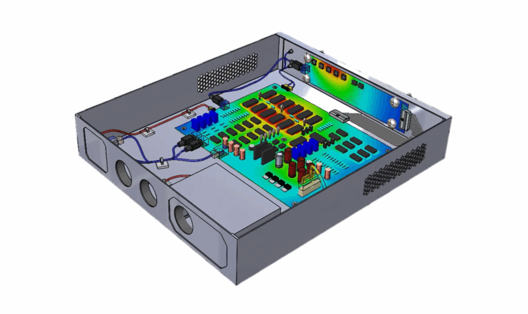 La simulación facilita además la comparación entre distintos materiales, espesores y configuraciones de ventilación, optimizando el diseño desde la etapa conceptual. De este modo, se pueden seleccionar las aleaciones más adecuadas, determinar la ubicación óptima de ventiladores o disipadores adicionales y garantizar que la chapa metálica cumpla con su función estructural y térmica. Esta integración del análisis computacional mejora la confiabilidad del dispositivo y prolonga su vida útil.