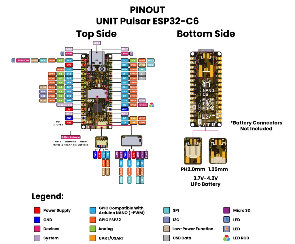 - ESP32-C6FH4 (Single-core RISC-V de 32 bits a 160 MHz)