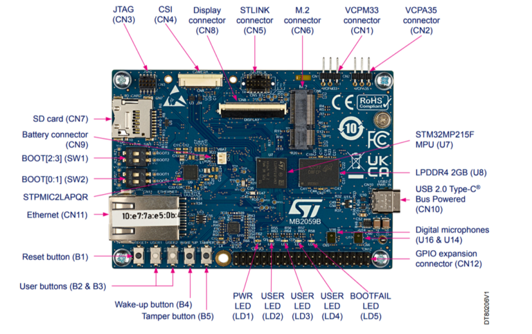- Distribución OpenSTLinux y software STM32CubeMP2 con ejemplos de Linux STM32 MPU de código abierto